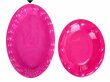 Zestaw 4 szt. owalnych talerzy w kolorze różowym, z ozdobymi wgłebieniami na krawędzi.