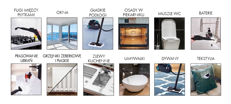 Z łatwością pomoże Ci wyczyścić fugi między płytkami, osady w piekarniku, poradzi sobie z grzejnikami żeberkowymi i płaskimi, pomoże Ci wyczyścić także okna, zlewy kuchenne, wanny, umywalki, baterie a także muszle WC.......