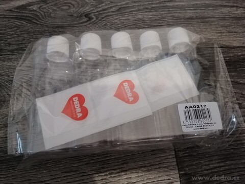 Wykorzystaj ten zestaw 5 butelek o pojemności 100 ml do tworzenia próbek dla Twoich klientek i klientów. Robienie wzorków zwróci Ci się w większych zamówieniach od klientów. Zwiększy się tak Twój zysk. W opakowaniu znajdziesz zestaw samoprzylepnych etykiet do opisywania buteleczek.