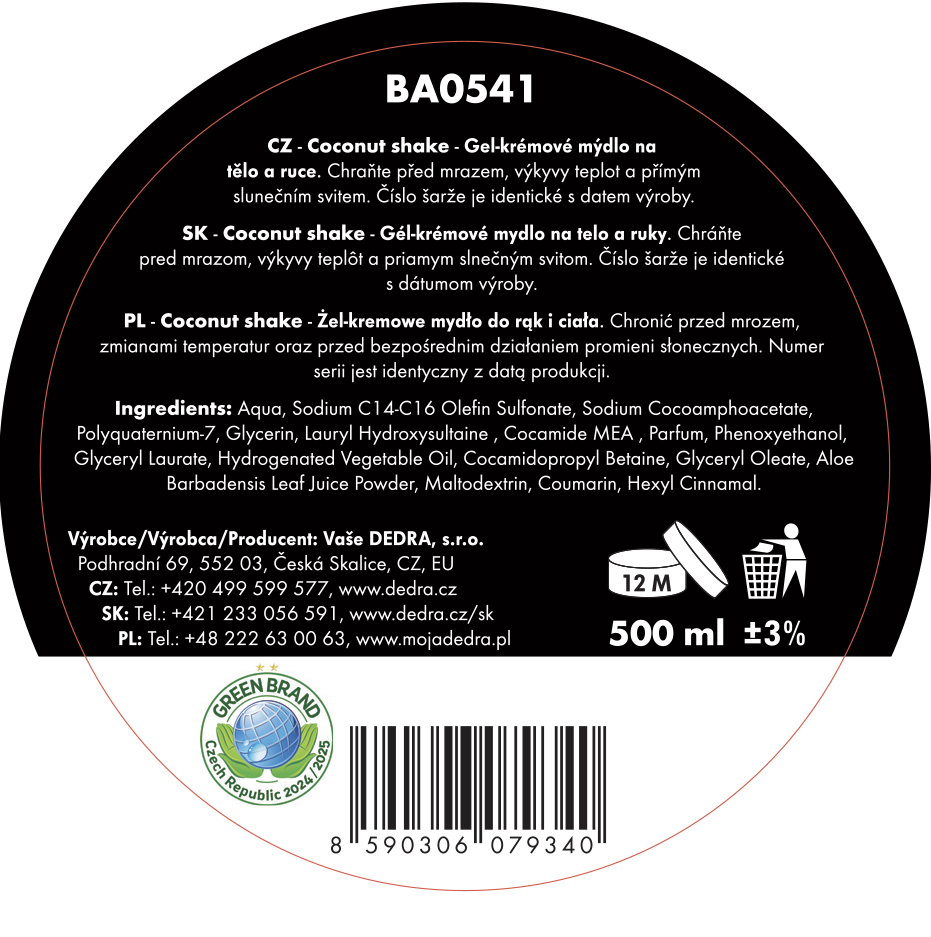 Producent / Importer: Vaše Dedra s. r. o., Podhradní 69, Česká Skalice, Republika Czeska