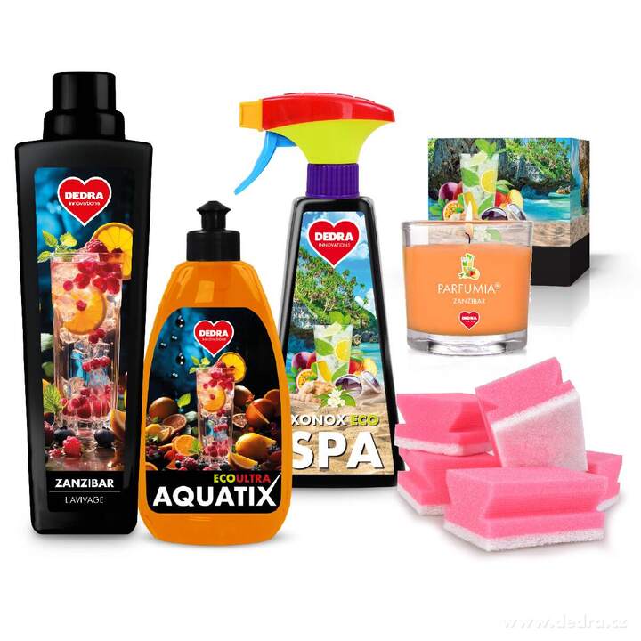 Zestaw prezentowy DEDRA ZANZIBAR to idealny wybór dla miłośników czystości i egzotycznych zapachów. Zawiera płyn do płukania tkanin, środek do czyszczenia łazienki, płyn do mycia naczyń, świecę sojową i gąbki XL. Pachnący relaksem Zanzibar zestaw doda świeżości każdemu domowi.