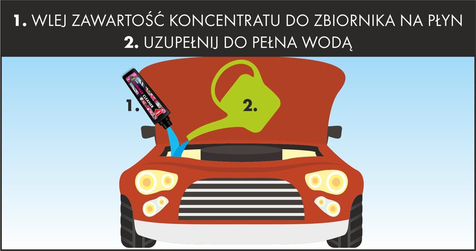 1. Wlej zawartość koncentratu do zbiornika na płyn do spryskiwaczy.