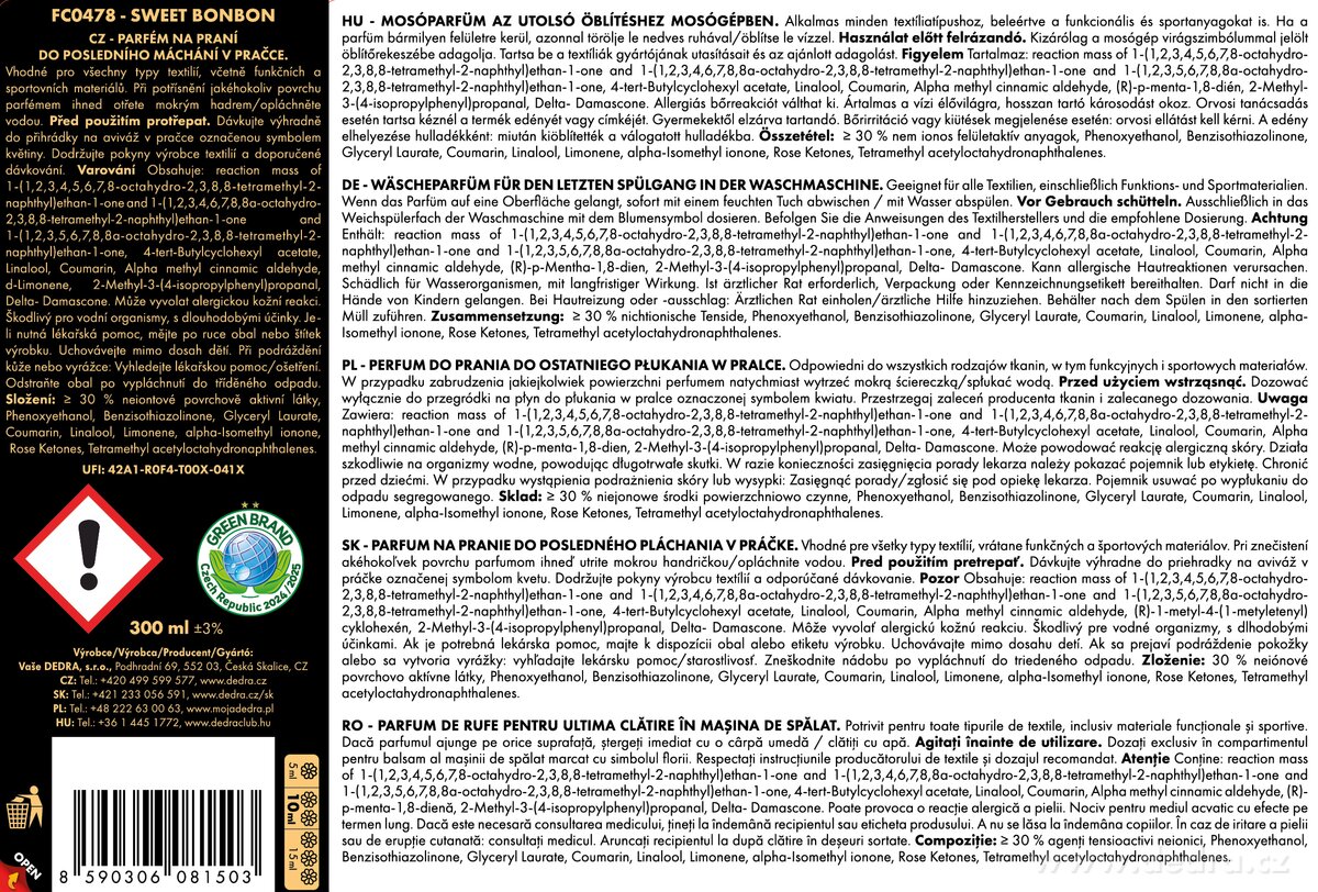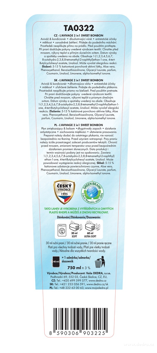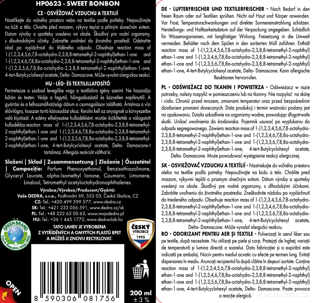 Distributor: Vaše Dedra s. r. o., Podhradní 69, Česká Skalice, Česká republika