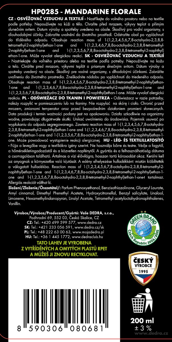 Výrobce: Vaše Dedra s. r. o., Podhradní 69, Česká Skalice, Česká republika