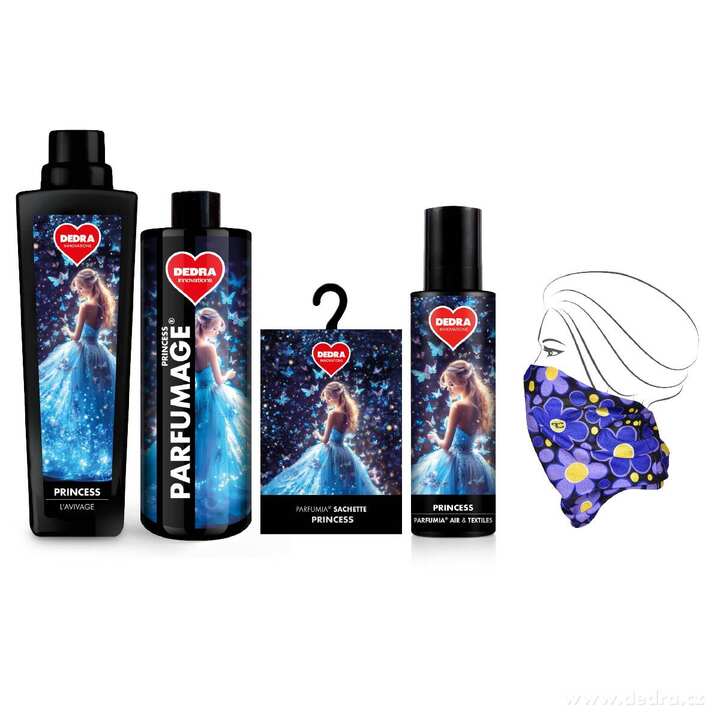 Zestaw prezentowy DEDRA PRINCESS to elegancki zestaw zapachowy dla kobiet, które kochają subtelne oraz świeże aromaty. Zawiera płyn do płukania tkanin, perfumy do prania i sprzątania, odświeżacz powietrza, saszetkę zapachową oraz chustę. Całość zapakujesz w przezroczysty woreczek, który jest w komplecie.