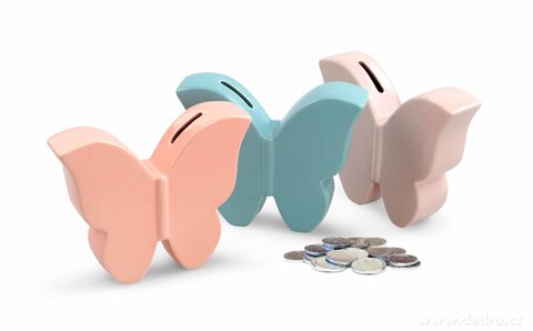 BUTTERFLY Ceramiczna skarbonka w kształcie motyla z błyszczącą glazurą, wolnostojąca.