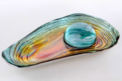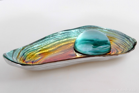 Misy mają nieregularne kształty, przypominają kamienie szlachetne lub muszle. HARMONY tace wykonane z dekoracyjnego szkła z tłoczeniem. Interesujące przenikanie się kolorów, całość błyszcząca. wymiary: dł.: 22,2 x szer.: 11 x wys.: 2,5 cm