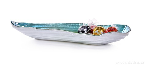 Misy mają nieregularne kształty, przypominają kamienie szlachetne lub muszle. HARMONY tace wykonane z dekoracyjnego szkła z tłoczeniem. Interesujące przenikanie się kolorów, całość błyszcząca. wymiary: dł.: 25,3 x szer.: 13 x wys.: 2,5 cm