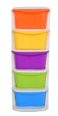 QUINTO REGAL mini pięciopiętrowy regał z utwardzonego plastiku z 5 wysuwanymi kolorowymi pojemnikami.