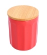 Ceramiczne naczynie z bambusową pokrywą i silikonową uszczelką, wysokość 13 cm, średnica 10 cm, objętość 670 ml.