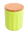Ceramiczne naczynie z bambusową pokrywą i silikonową uszczelką, wysokość 13 cm, średnica 10 cm, objętość 670 ml.