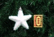 2 śnieżnobiałe gwiazdki z połyskującymi nićmi.