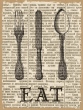 Obraz na płótnie EAT ze sztućcami na papierze gazetowym, w rozmiarze 30 x 40 cm.