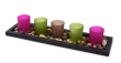 5 szt. szklanych świeczników na drewnianej podstawce