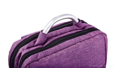 Business bag, stylowy plecak, przestronna tylna część wewnątrz z dużą wyściełaną wzmocnioną kieszenią i paskiem na rzep dla bezpiecznego przenoszenia np. laptopa (do rozmiaru ok. 38 x 25 cm) i mniejsza kieszeń np. na tablet (ok. 22 x 20 cm). Przednia część wewnątrz z 4 kieszeniami np. na telefon i dokumenty, dwie pętle na długopisy i pióra. Z przodu mniejsza kieszeń zapinana zamkiem błyskawicznym na różne drobiazgi, regulowane wyściełane paski i srebrny uchwyt do przenoszenia.