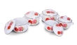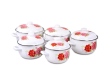 10-częściowy zestaw emaliowanych garnków w groszki ze szklanymi pokrywami z wylotem pary.