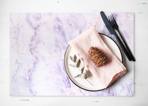 Podkładka na stół z cyfrowym nadrukiem, wykonana z plastikowej plecionki.