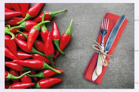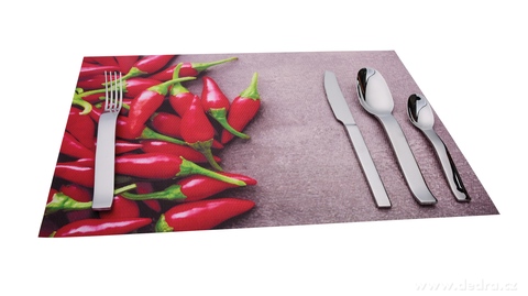 Podkładka na stół z cyfrowym nadrukiem, wykonana z plastikowej plecionki.