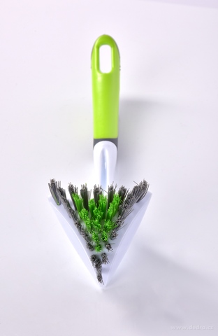 Powierzchnia szczotki w kształcie trójkątka- wymiary obszaru czyszczącego 6 cm x 5,5 cm, długość ok. 25 cm.