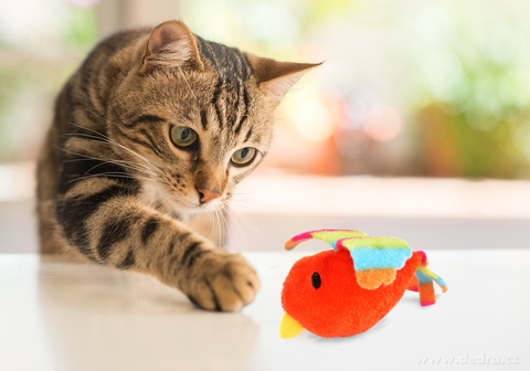 który po dotknięciu piszczy i zaciekawi Twojego kota delikatnym dźwiękiem.