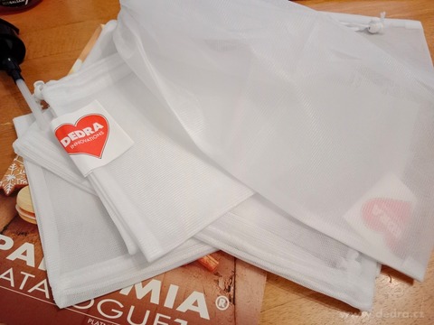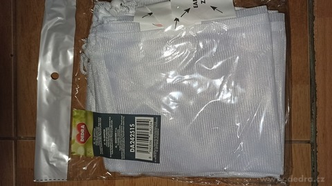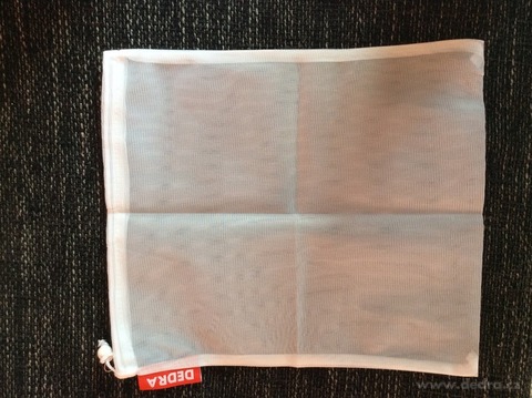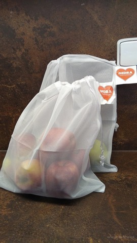 100% siatka PES (siatka jest oddychająca, a także umożliwia sprawdzenie zawartości woreczka przy płatności na kasie).