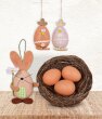 Ozdoba w kształcie gniazda z 3 jajkami nada Twojemu wnętrzu świeży i delikatny wygląd.