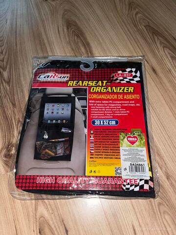 Ten wiszący organizer jest doskonałym pomocnikiem dla wygodnego podróżowania nie tylko z dziećmi. Etui na tablet jest dotykowe więc można go z łatwością obsługiwać wewnątrz. Pozostałe praktyczne kieszenie wykorzystasz do przechowywania drobiazgów, które chcesz mieć pod ręką podczas podróżowania.