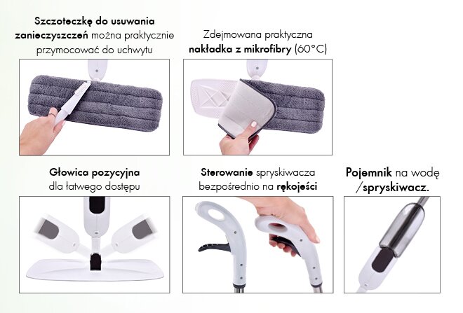 MOPOSPRAY Praktyczny mop ze zbiornikiem rozpylającym na wodę lub środki czystości,