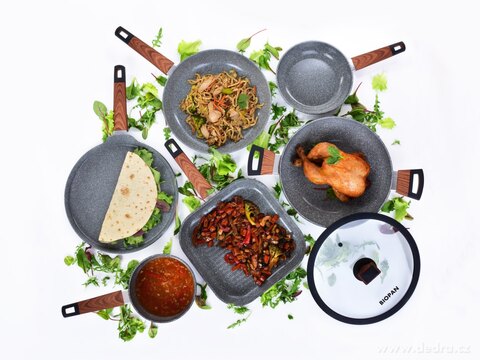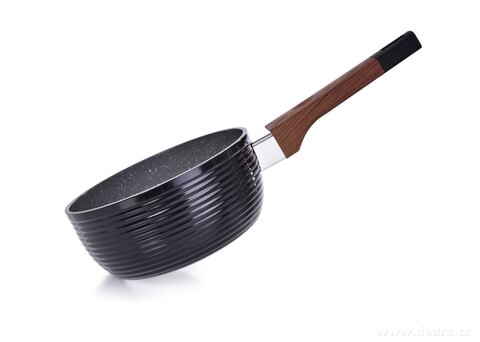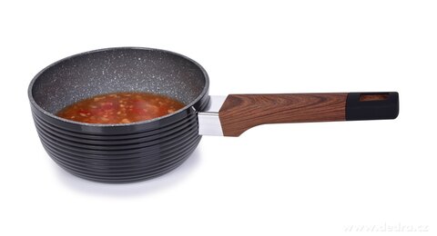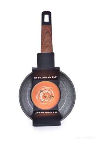 Wewnętrzna powierzchnia ceramiczna patelni S&P przypomina naturalny kamień, jest łatwa w utrzymaniu i ma długą żywotność. Patelnie mają masywną konstrukcję i oryginalny antypoślizgowy uchwyt SOFT TOUCH (przyjemny w dotyku) z IMITACJI DREWNA. Mogą być również używane na kuchenkach indukcyjnych.