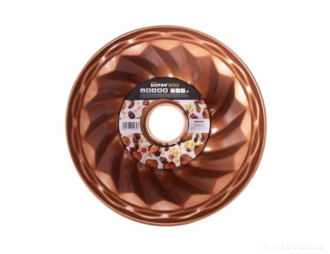 Forma na babkę ze stali ze złoto-miedzianą powierzchnią nieprzywierającą BIOPAN® GOLD premium, która jest łatwa w utrzymaniu i trwała. Premium BIOPAN® GOLD łatwe wyjmowanie gotowych przysmaków z form.