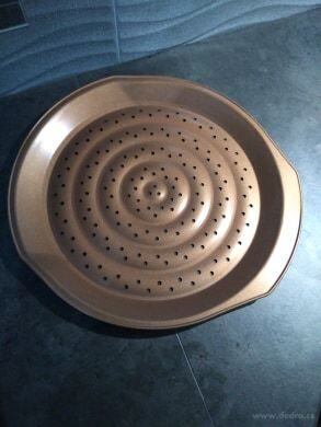 Mrożoną, wstępnie podpieczoną PIZZĘ upieczesz bez tłuszczu. Otwory w spodzie świetnie "dopieką" ją od dołu.