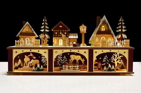 Drewniana, szczegółowo dopracowana leśna wioska z oświetleniem LED.