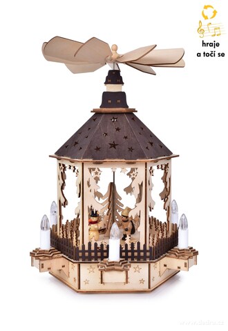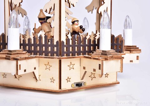 Drewniana szczegółowo dopracowana karuzela z 6 dekoracyjnymi świeczkami LED,