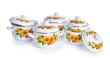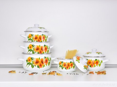 10- elementowy zestaw emaliowanych garnków w słoneczniki z pokrywkami.