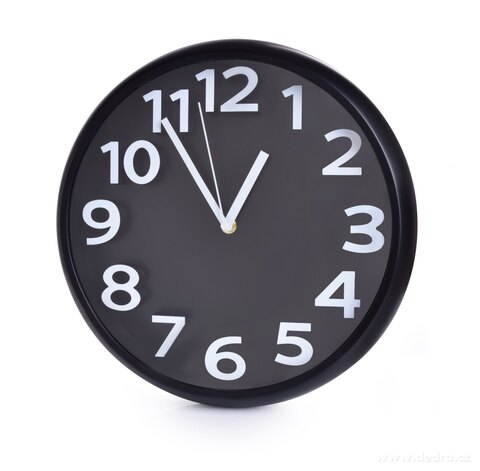 Duży zegar ścienny, czarny, analogowy, mechanizm kwarcowy na 1 baterię