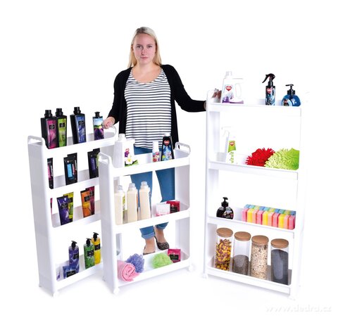Wykorzystasz go w matwych miejscach i rozszerzysz w ten sposób przestrzeń do przechowywania, na przykład obok mebli kuchennych, pralki, WC. Idealny na środki do sprzątania, prania lub czyszczenia, papier toaletowy, ale także aromaty, przyprawy, oleje, butelki i inne ...