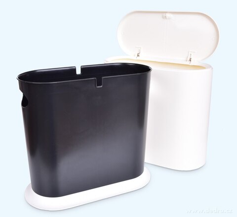 poprzez naciśnięcie pokrywy, wykonano z trwałego tworzywa sztucznego. Pojemność ok. 10 l.