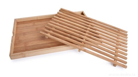 BAMBUSOWA DESKA DO KROJENIA pieczywa, złożona z dwóch części, solidnej deski i rusztu.