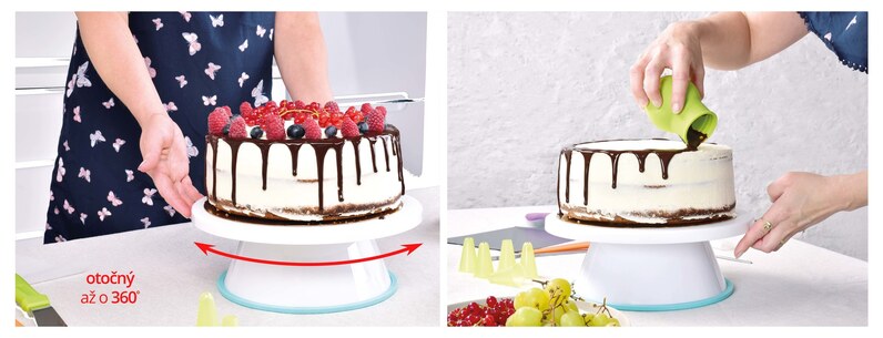 Obrotowy stojak ułatwi Ci dekorowanie i zdobienie ciast. Obracać możesz ją aż o 360°.