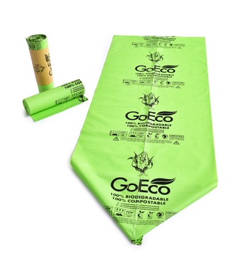 10 szt. Ekoworek na śmieci, z kukurydzy, 100% kompostowalny, objętość 60 litrów, wymiary jednego 60 x 80 cm.