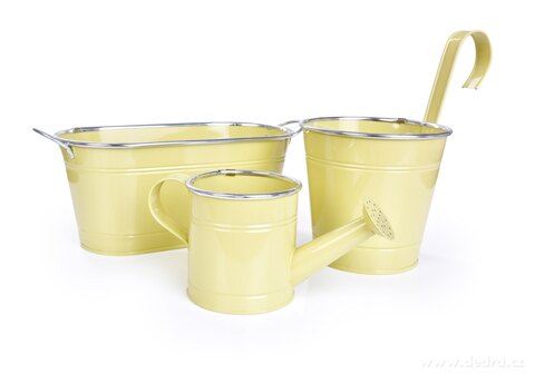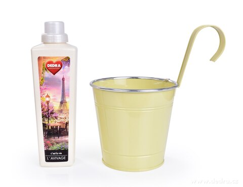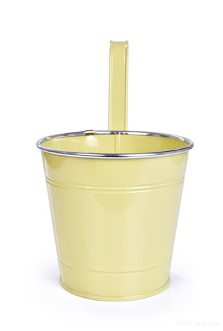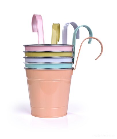 Zawieszana lub stojąca doniczka metalowa, objętość ok. 1800 ml, wymiary: średnica 15,5 cm, wysokość 14,5 cm (z hakiem 26,5 cm).