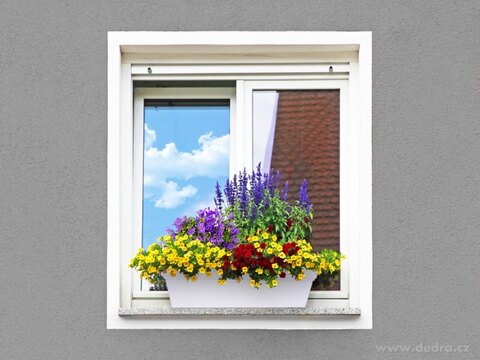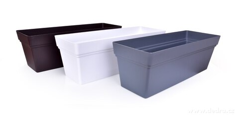 Plastikowa samopodlewająca skrzynka na kwiaty do użytku wewnętrznego i zewnętrznego.