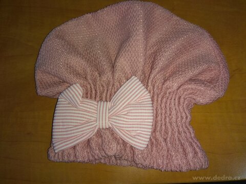 TURBAN/CZAPKA z kokardką do suszenia mokrych włosów. Obwód ok. 38 – 62 cm, wysokość 21 cm.