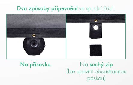 na dole można przymocować przyssawką lub na rzep. Materiał: plastik, metal + siatka PCV.