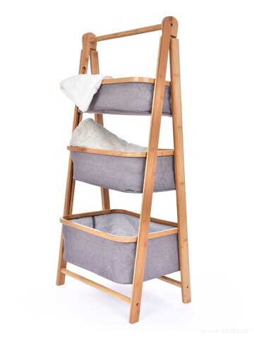 SKŁADANY REGAŁ BAMBUSOWY z 3 koszami do przechowywania z melanżowej tkaniny (w dolnej części solidne wzmocnienie).