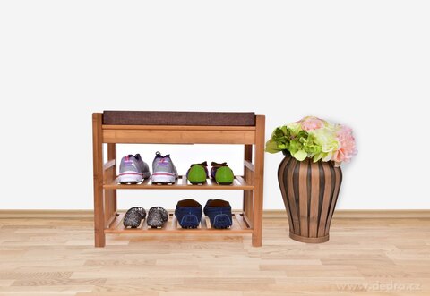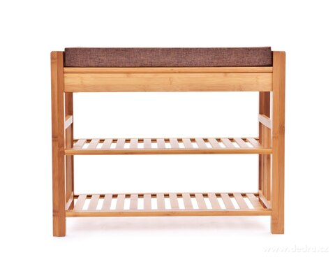 BAMBUSOWA PÓŁKA NA BUTY/ ŁAWKA z tapicerowanym siedziskiem i 2 półkami,