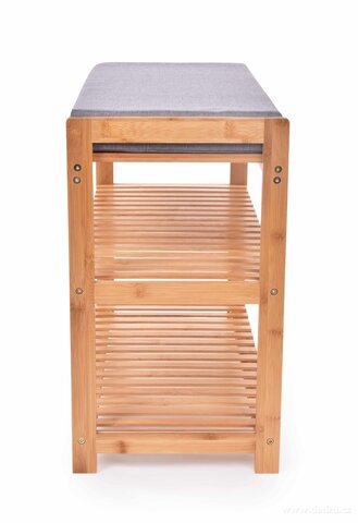 BAMBUSOWA PÓŁKA NA BUTY/ ŁAWKA z tapicerowanym siedziskiem i 2 półkami.