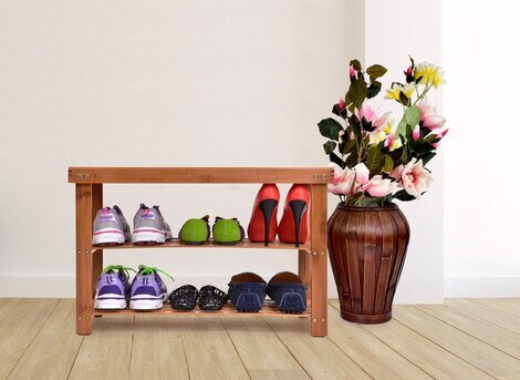 BAMBUSOWA SZAFKA NA BUTY/ ŁAWKA z 2 półkami. Wymiary: szer. 69 x gł. 27 x wys. 44 cm.