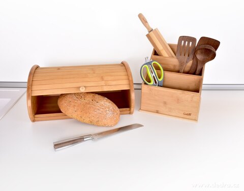 BAMBUSOWY CHLEBAK z przesuwną pokrywką dla łatwego dostępu do pieczywa.