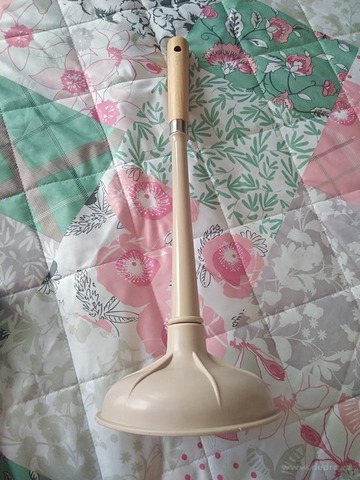 Przepychacz do odpływu z uchwytem z drewna bukowego.
